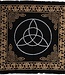 Dieses hochwertige schwarze Altartuch mit silberner Triquetra und goldenen keltischen Knoten stammt aus Jaipur, Indien. Es wird in Handarbeit aus 100 % natürlicher und nachhaltiger Bio-Baumwolle gefertigt. Die Symbole und die verschiedenen Farben werden mithilfe spezieller Siebe und Stempel von Hand aufgetragen. Da dieses Altartuch handgefertigt ist, können kleinere Unregelmäßigkeiten auftreten. Dazu gehören beispielsweise Streifen (vor allem auf der Rückseite durch das Waschen) oder Flecken sowie Linien, die nicht ganz blickdicht sind. Dies ist bei einem handgefertigten Altartuch unvermeidbar. Das Ergebnis ist ein wahrhaft authentisches, handgefertigtes Altartuch, wie man es nur in Indien findet.